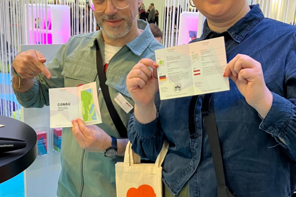 In keeping with this year’s theme, "The Danube", and the accompanying podcast, we placed messages in bottles around the fairgrounds. Finding suitable spots for them was harder than we expected. We were all the more delighted when the first lucky finder picked up her prize—a ten-euro Büchergutschein—at our booth early Thursday morning. Giving the joy of reading as a gift is simply a great idea.
